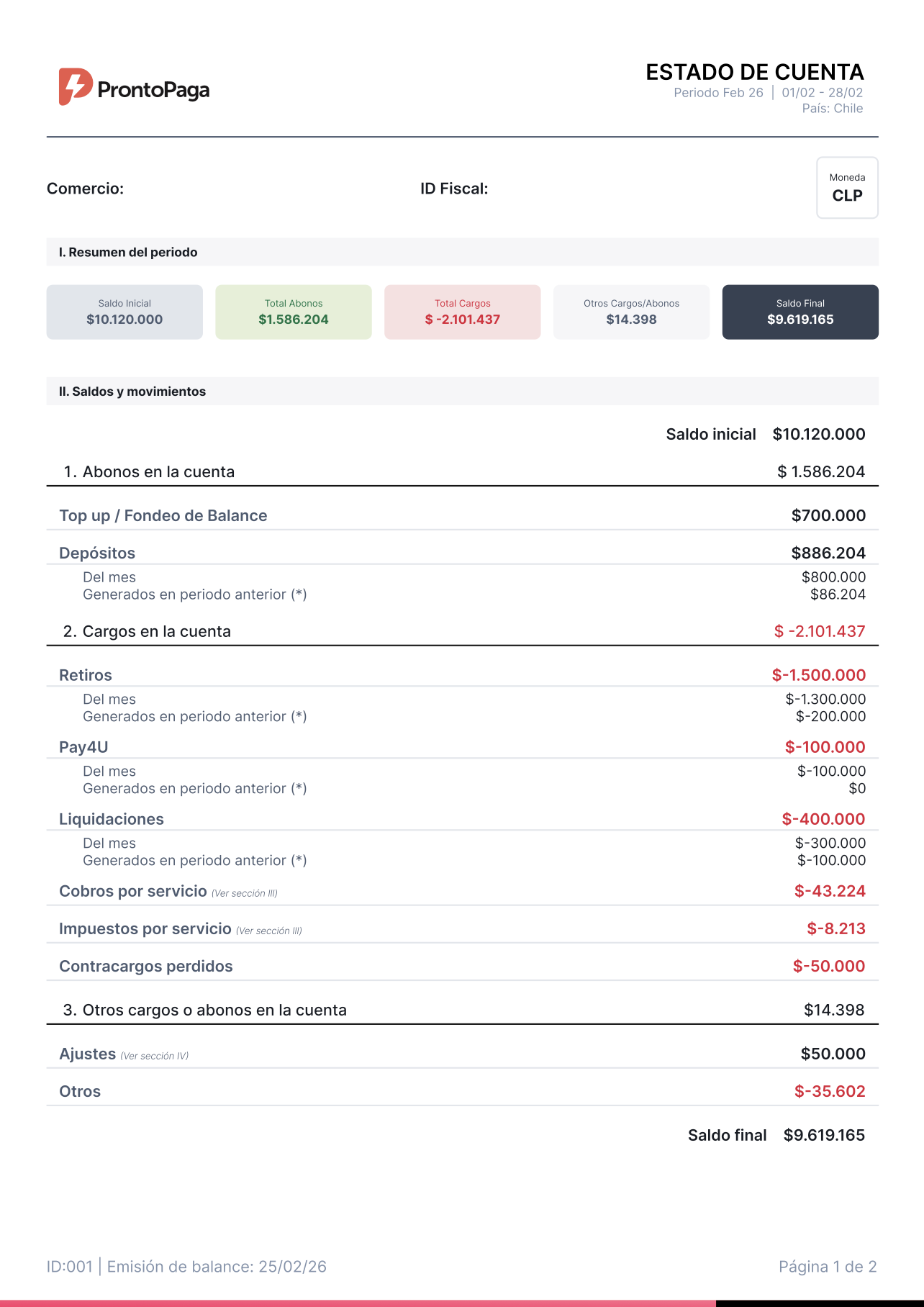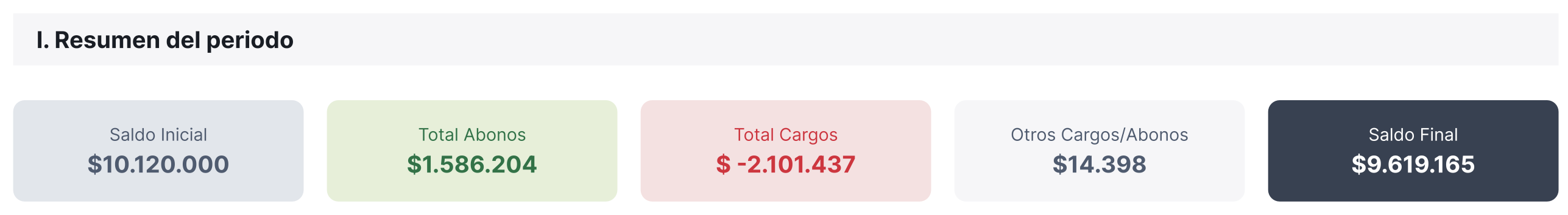 • Otros cargos/abonos: Ajustes u otros movimientos no operativos.